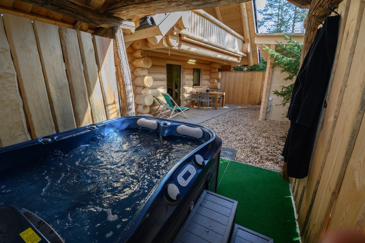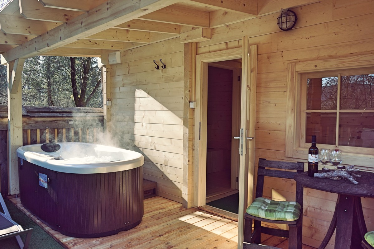 Bear Lodges – Godetevi il massimo del relax con la vostra vasca idromassaggio privata e la sauna finlandese.